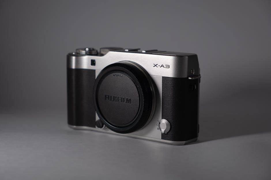 Unbox, charge, and insert the battery to begin. Familiarize yourself with the camera’s layout, and refer to the manual for initial setup instructions and customization options.